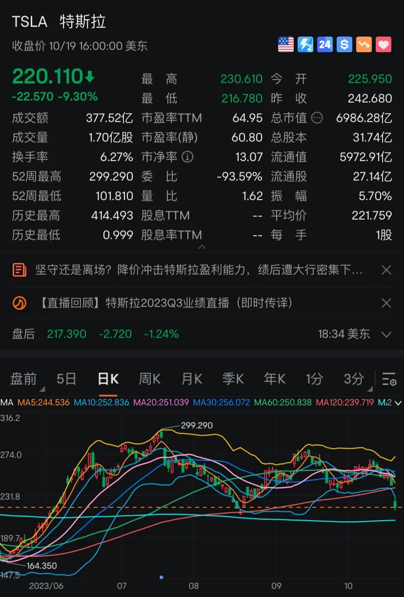 由于特斯拉三季报的营收和盈利自2019年二季度以来首次双双逊于预期,该公司股价在10月19日(周四)跳水超9%,导致CEO兼世界首富马斯克的身家至少缩水了160亿美元。