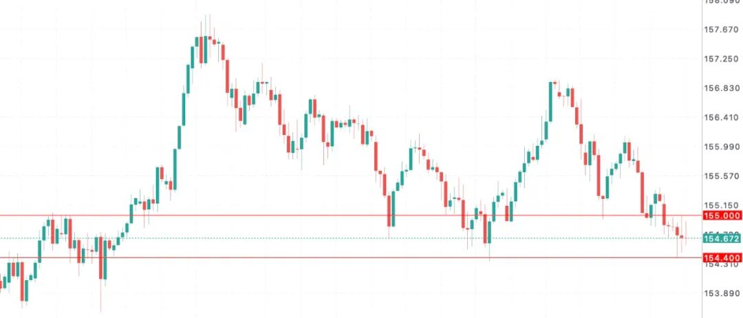 4小时级别来看,美日短线阻力构筑于155.00区域水平,日内汇价若能够突破该区域限制,则倾向于上行测试155.35区域水平。下行结构来看,美日短线支撑构筑于下方154.40区域水平,日内汇价若失守于该区域防线,将面临下行测试154.10区域水平之风险。