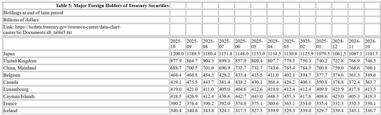 日本是美国国债的最大海外持有国,10月日本所持美债增加107亿美元,达到1.2万亿美元。自2019年6月持仓超越中国大陆以来,日本一直是美国国债最大的海外持有国。