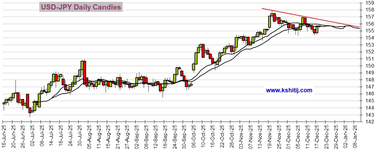 美元/日元已从154.51的低点大幅反弹,但在156-157区间面临短期阻力。总体而言,只要汇率保持在154上方,短期内可能仍会在154-157/158区间内波动。预计明日日本央行会议后市场将更加明朗,市场普遍预期该央行将降息25个基点。