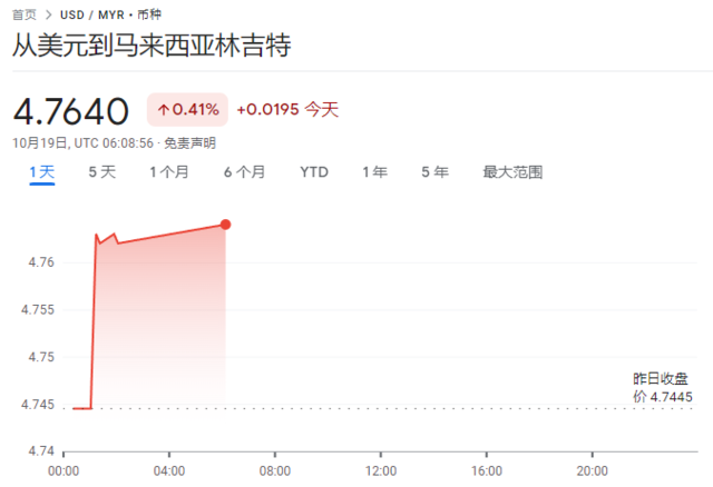 周四,马来西亚林吉特兑美元跌超0.4%,至1美元兑4.764林吉特,创自1998年亚洲金融危机以来的最低水平。