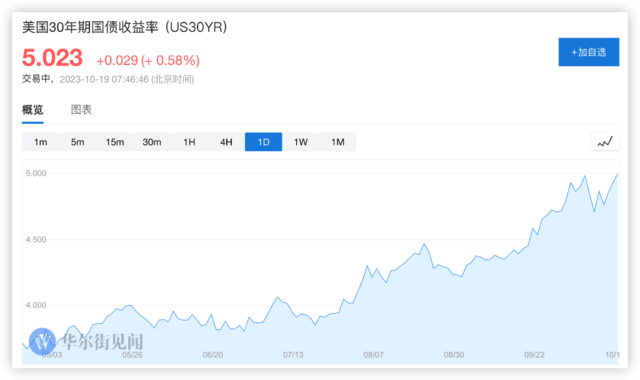xm外汇新闻:鹰派预期快速升温,30年期美债利率涨破5%