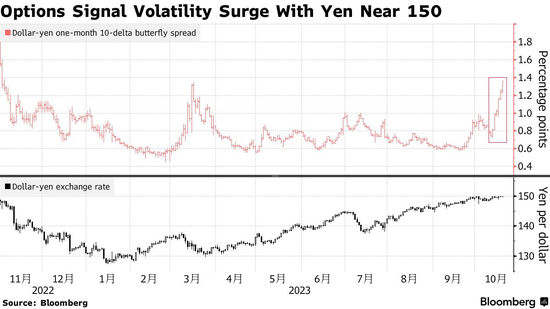 由于越来越多的人担心日本当局将采取干预措施来支持持续走软的日元,日元的波动可能会加剧。Monex Inc.的债券和货币交易员Tsutomu Soma说,与此同时,由于人们猜测日本央行可能调整货币政策,以及以色列-哈马斯冲突升级,日元可能面临升值压力。