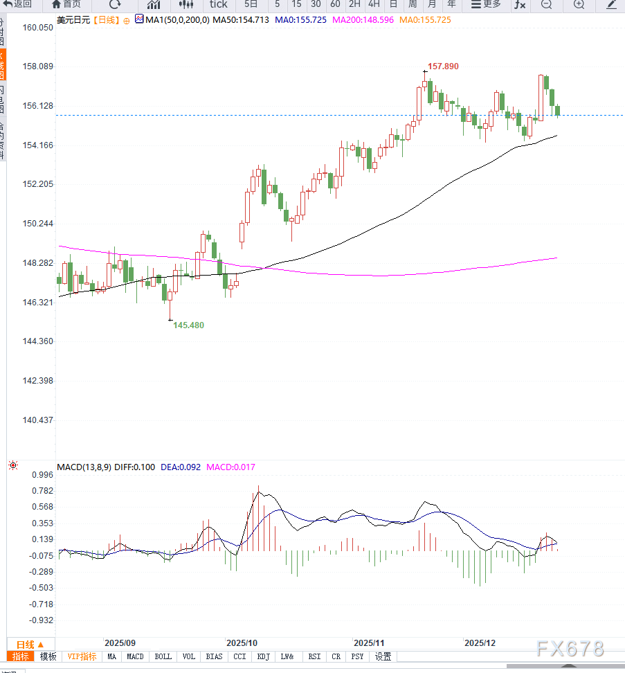 短期内,若风险事件持续发酵,USD/JPY仍面临下探压力;但在年末流动性偏低的环境下,走势或呈现震荡下行特征,需关注关键技术位的突破情况。