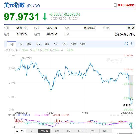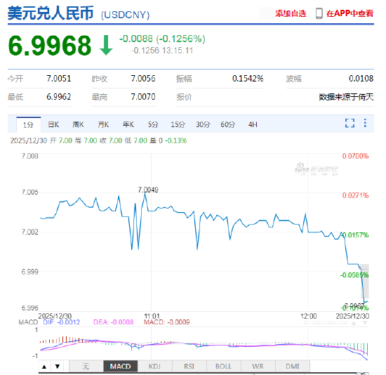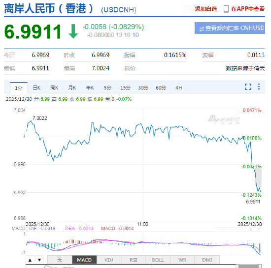 12月30日,美元指数持续走弱,在岸、离岸人民币双双升破7关口。