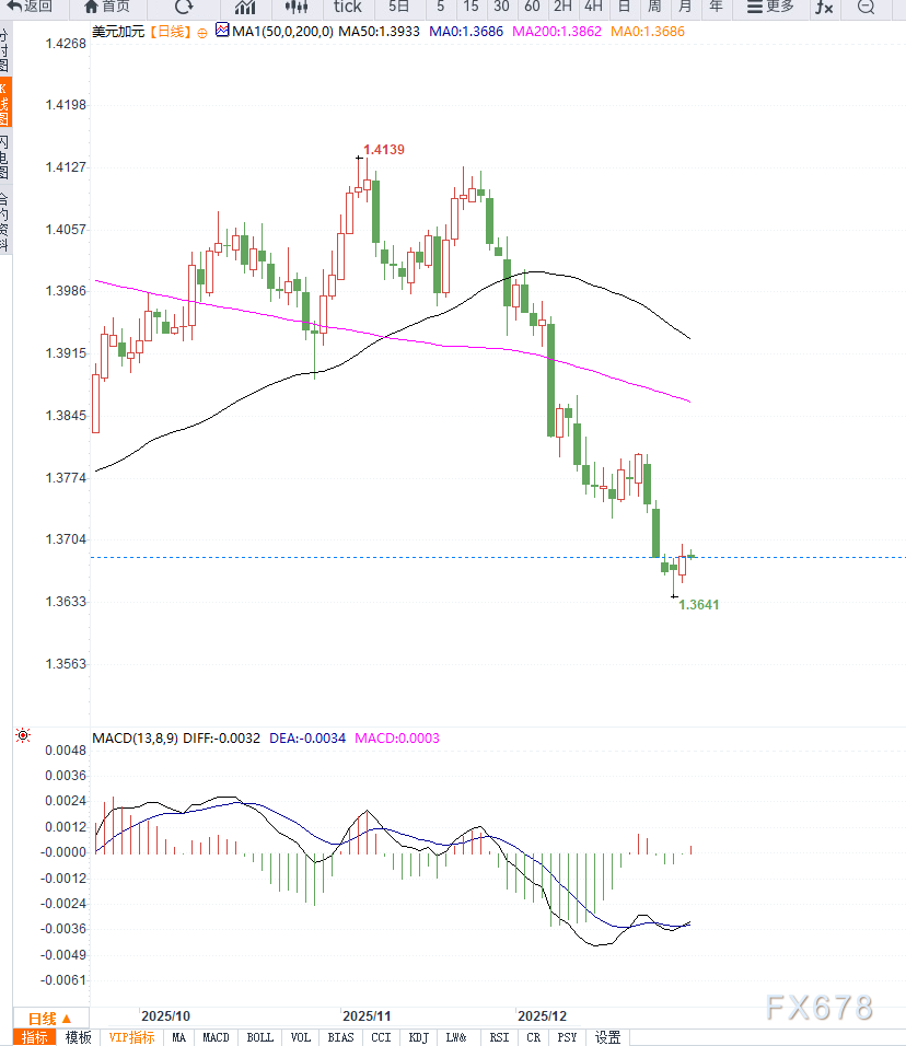 当前美元兑加元的走势呈现出“油价托底加元、政策预期压制美元”的双向拉锯格局。在缺乏新的宏观催化因素前,汇价大概率维持区间震荡。需重点关注油价波动及美联储会议纪要释放的政策信号,它们将决定汇价跨年前的最终方向。