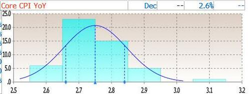 美国劳工统计局将于美东时间周二上午8:30(北京时间今晚21:30)发布12月消费者价格指数(CPI)。彭博调查的经济学家普遍预计,12月整体CPI与剔除食品和能源成本的核心CPI同比涨幅均将达到2.7%。若该预测成真,整体CPI将与11月持平,而核心CPI则较前值2.6%小幅加速。
