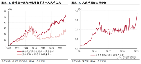 9月份,银行代客涉外人民币收付占比、货物贸易中人民币计价结算占比处于历史高位,人民币国际支付份额创历史新高,但潜在风险值得关注。