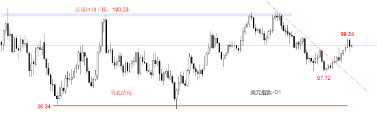 行情方面,美元指数保持中期的横盘震荡态势,下限96.34,上限100.23点。11月21日至12月24日是新一轮震荡区间内的下跌,最低触及97.72点,距离下限仍有一段距离。12月25日以后,美元指数开始中短期反弹走势,目前最高价触及99.24,逼近100整数关口。昨日K线呈现出大波动率、中下影线的阴K线,有短期触顶迹象。如果今日继续收阴线,中短期反弹波段可能宣告终结。