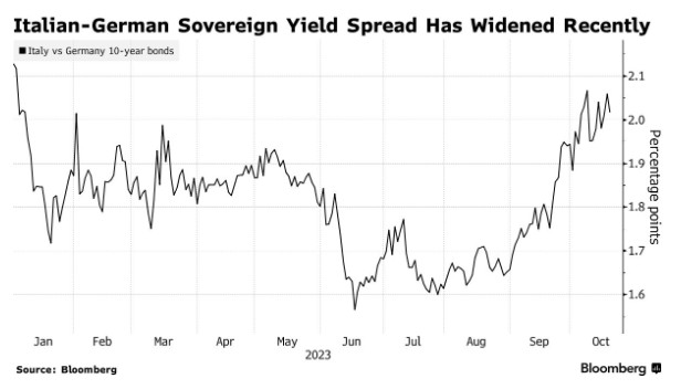 欧洲央行管委会成员Gabriel Makhlouf本月早些时候表示,意大利与其他国家的债券收益率之差“绝对是”官员们“将非常关注的问题”。意大利和德国的10年期国债收益率之差最近突破了200个基点,这是一个受到广泛关注的水平。
