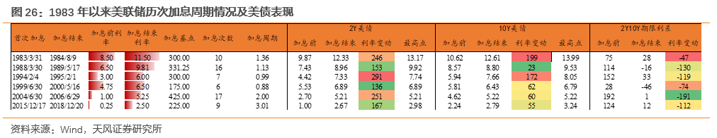 1982年以来,美联储共进行了七轮加息,目前正处于第七轮加息周期中。历史上,美联储加息周期中,美债走势表现如何?