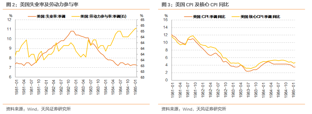 1983年3月,美联储开启加息,本轮加息周期持续1.36年,联邦基金利率目标从8.5%上调至11.5%,共进行降息2次、加息10次,累计加息300bp。