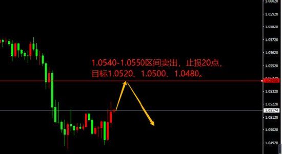1.0540-1.0550区间卖出,止损20点,目标1.0520、1.0500、1.0480。