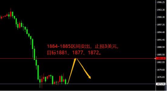 1884-1885区间卖出,止损3美元,目标1881、1877、1872。
