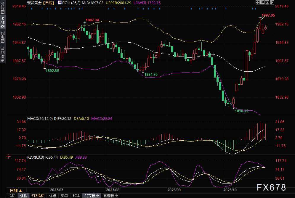 阻力位:1982.80美元/盎司;1997.30美元/盎司; 2008.10美元/盎司