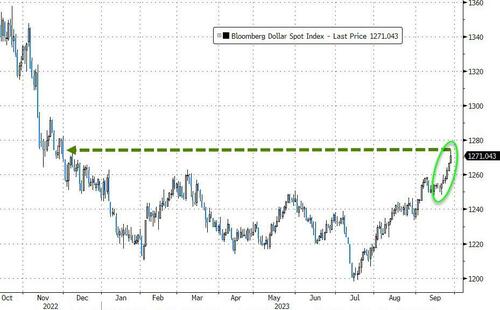 富国银行(Wells Fargo)策略师Brendan McKenna表示,“美国经济具有韧性、美联储仍持鹰派立场,再加上新兴市场主要经济体面临的经济挑战,正给风险敏感资产带来压力。”