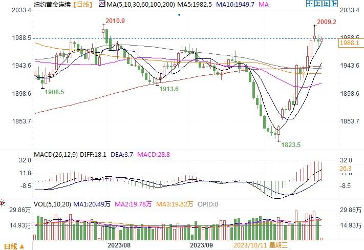 分析师们在最新报告中写道:“上周美国通胀高于预期,零售销售高于预期,增加了美联储在11月进一步收紧货币政策的可能性。”“尽管如此,金价仍保持前一周的势头,涨至每盎司1997美元的高位。反弹的部分原因可能是空头回补,进一步受到中东冲突升级的助力,推动了避险需求。”