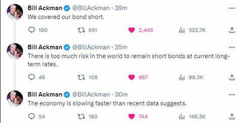 作为华尔街最著名的债券空头之一,阿克曼在社交媒体上宣布,他已经平掉了长期美债的做空仓位。