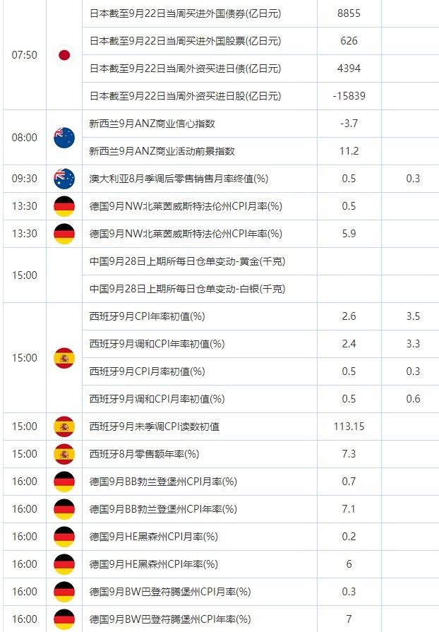 16:00 德国9月BY巴伐利亚州CPI月率(%)(0928-0929) , 前值 0.3 , 预期值 -- , 公布值:待发布