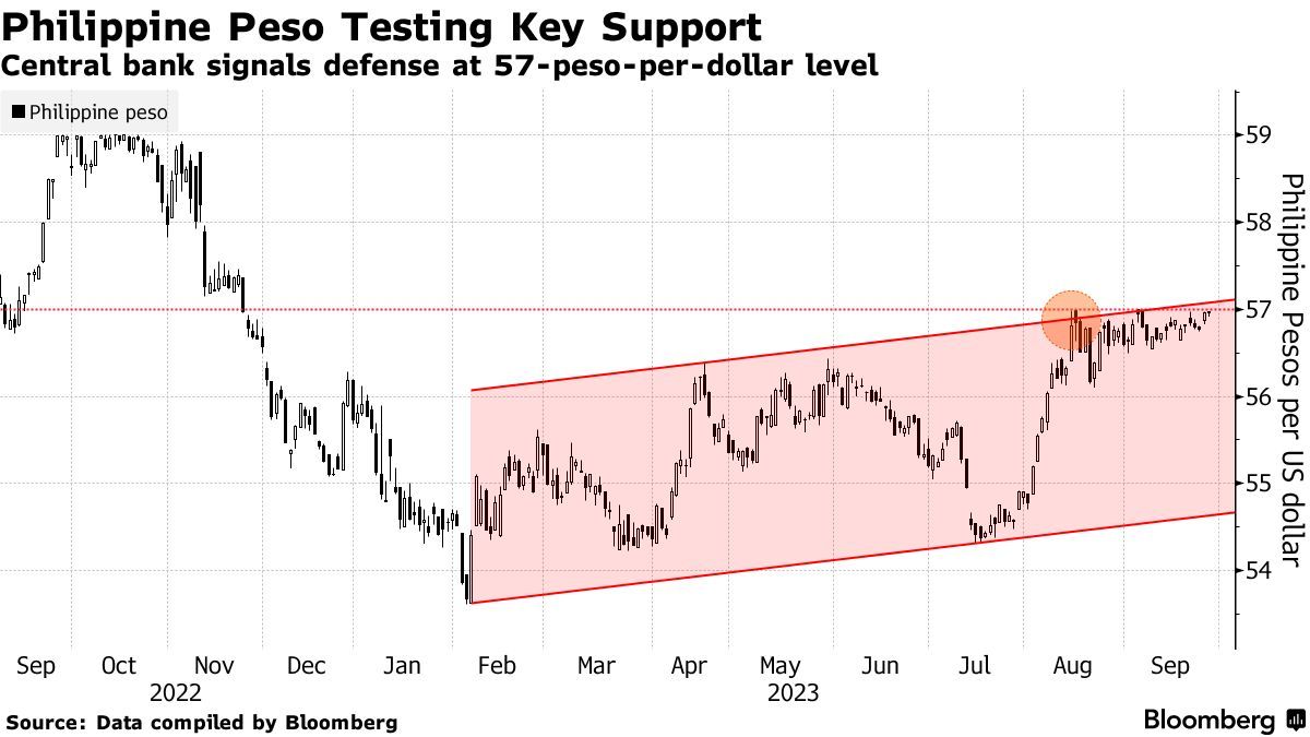 菲律宾比索是本季度表现最差的亚洲货币之一,原因在于油价上涨打击了投资者对作为石油进口国的菲律宾的货币的信心,且美元在美联储采取鹰派立场的背景下走强。自8月中旬以来,美元兑菲律宾比索汇率一直徘徊在略低于57的水平。