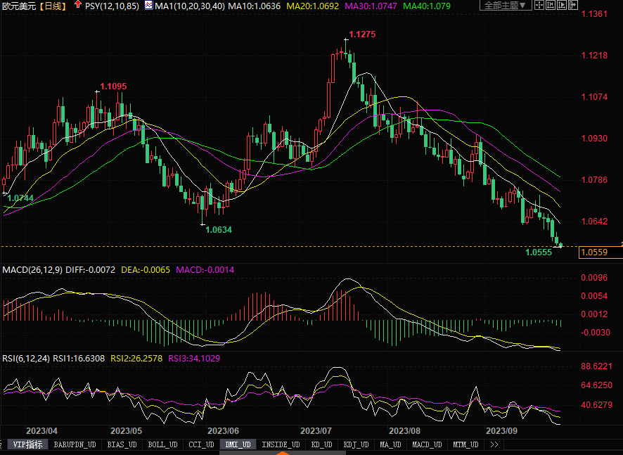 周二(9月26日),美元指数当日上涨0.26%,至106.21,为11月30日以来最高。欧元下跌0.23%,至1.0567美元,为3月16日以来最低。周二的数据显示,8月美国新建独栋住宅销量降幅超过预期,受欢迎的30年期固定抵押贷款利率跃升至7%以上,但7月美国房价同比连续第二个月加速上升。经济数据依然强劲,进一步增强美国例外论的散发。明尼亚波利斯联邦储备银行总裁卡什卡利周二表示,美国经济实现“软着陆”的可能性较大,但也有40%的可能性,美联储需要“大幅”提高利率以抑制通胀。美国经济有望实现软着陆的前景,目前推动着美元持续逞强。而欧元区则出现相反的景象——经济萎缩、利率似到了终点值。为此,当前阶段欧元难以在宏观面上获得支撑因素,在美元持续走强的压迫下,欧元探低路程恐怕尚要延续。下方1.05成为了关键的支撑水位,若跌穿,恐会引起新的底部想象。
