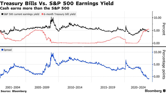 目前,6个月美国国库券的收益率约为5.5%,为2001年以来最高,而标普500指数的收益率约为4.7%。根据外媒汇编的数据,这是自2000年以来现金资产相对于股票的最大优势。