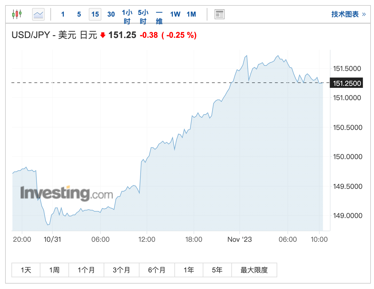 上述警告是在日元兑美元汇率隔夜跌破151关口后发出的。周二,日本央行决定进一步放松对10年期国债收益率的控制,表示长期收益率上限从1%变为更灵活的“1%左右”。