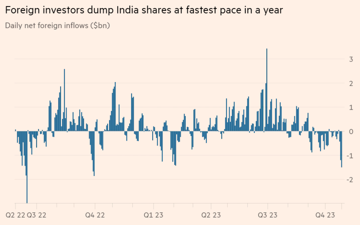 根据业内统计的一组数据,全球投资者在上周五净抛售了价值15亿美元的印度股票,这是自去年9月以来最大的单日抛售。在今年早些时候,由于押注印度经济增长强劲,大量资金曾流入印度,但如今不少海外投资者似乎正仓皇撤离。