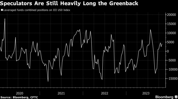 MLIV Pulse最近的一项调查显示,对美元的热情可能已在9月份达到顶峰,其他分析师也和Fiotakis一样。CFTC数据显示,截至10月10日当周,杠杆基金(投资者中最具投机性的类型)在ICE美元指数上的多头头寸合计增加至近4,600份合约,为7月以来的最高水平。