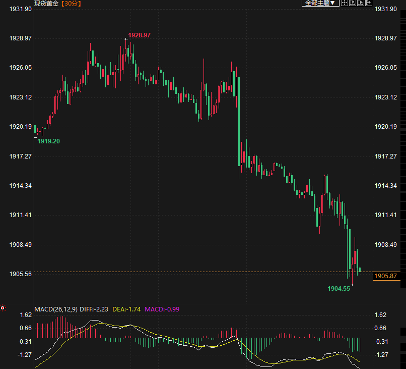(现货黄金30分钟走势图)
