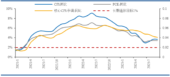 预计高利率持续时间会更长,有可能要到明年年底才能看到降息,远超市场目前的预期。这种预期差的变化,将会成为目前至明年上半年海外宏观市场的焦点之一。