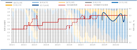 四个轮值的地方联储主席中,仅有旧金山联储主席戴利(Mary C. Daly)相对偏鸽派,在10月初明确表示“美联储或无需再一次加息”,与之对应的克利夫兰联储主席梅斯特(Loretta J. Mester)则认为“今年可能需要再加息一次”。此外,偏鹰的三位地方联储主席都都在公开场合降息需要等到明年更晚一些。因此,暂时不排除明年再加息一次的可能性,但更为确定的是降息需要更长时间(longer),开始的时间会更迟。