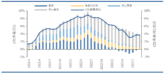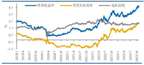 一是,巴以问题;目前预计不会扩大,不会对原油生产和物流造成影响,因此能源、食品和核心商品不会大幅拉动通胀的上涨。二是,美债危机;短期而言5%的十年美债收益率必然要破,高利率展期的美债将导致未来一年美国财政部要偿还的债务缺口有4.1万亿美元(债务7.6万亿,财政收入3.5万亿)。三是,党争+美国大选;10月25日,迈克·约翰逊高票当选众议院议长,其政治倾向“社会保守主义”,特朗普的拥护者,典型的“右翼”,虽然短期有利于弥合共和党党内矛盾,解决11月中旬美国政府关门问题,但对于2024年美国大选而言,共和党的筹码又增加了一些;两党在明年的政府预算和法案的审批中博弈加剧,预计明年美国财政发力不足。四是,全球流动性危机;日本经济增速优势明确、加息迫在眉睫,一旦开启加息,将产生吸水效应,欧洲和部分新兴市场受影响最大,一旦美国以外发生金融风险,亦会传导影响到美国国内的金融系统。五是,劳资谈判;目前美国汽车行业的谈判取得进展,但医疗行业仍在持续,并已经开始蔓延到更多行业,加之欧洲持续不断地罢工,终将导致核心服务成本的上升,拉动通胀、增加社会矛盾。