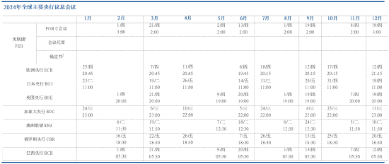 注:“/”前为会议利率决议公布具体日期,“/”后未对应星期。数据来自于官网,但未来官方仍有调整可能,请以具体公布时间为准。1.美联储每年召开8次议息会议,会议间隔大约6周左右的时间;美联储主席新闻发布会时间为利率决议公布后半小时召开;每个季度最后一个月随利率决议一起公布经济预期和点阵图;会议纪要有时令区别,夏令时为02:00,冬令时为03:00。2.褐皮书,英文亦称the Beige Book,为美国联邦储备委员会(FED)每年发布八次的美国经济展望调查报告。取名 “褐皮书”系因装订镶边颜色属褐色,该报告包含12地区FED分行所提出的地区经济情况摘要与全国经济情况摘要,该报告是美联储货币政策决策例会的重要参考资料。