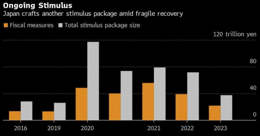 智通财经获悉,日本首相岸田文雄宣布了一项超出预期的经济刺激计划,旨在提振日本经济增长,帮助受通胀影响的家庭。日本首相岸田文雄正试图支撑不断下降的经济支持。岸田文雄称,追加预算将为经济刺激方案提供13.1万亿日元经费;纳入减税措施后,经济刺激方案总规模约为17万亿日元。尽管与近年来疫情期间的其他计划相比,该计划规模较小,但计划草案显示的财政支出规模约为上月接受调查的经济学家预期规模的两倍。