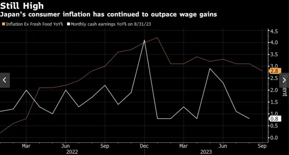物价飙升促使日本政府出台了一系列措施,以限制物价上涨引发的生活成本紧缩,但宽松财政政策加大日元贬值的压力,使得日本这个依赖于进口的国家遭受更严重的通胀压力。一年半多来,日本物价涨幅一直高于日本央行2%的目标。东京10月份消费者通胀意外加速,将给政策制定者增加压力。上周五的数据显示,东京不含生鲜食品的价格上涨了2.7%。该数据是反映日本全国通胀趋势的领先指标。