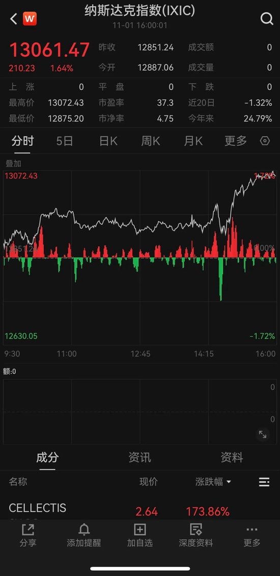 美国三大股指全线收涨,道指涨0.67%报33274.58点,标普500指数涨1.05%报4237.86点,纳指涨1.64%报13061.47点。卡特彼勒涨2.56%,微软涨2.35%,领涨道指。万得美国TAMAMA科技指数涨2.47%,英伟达涨3.79%,特斯拉涨2.4%。中概股涨跌不一,金生游乐涨10.7%,百胜中国跌15.2%。