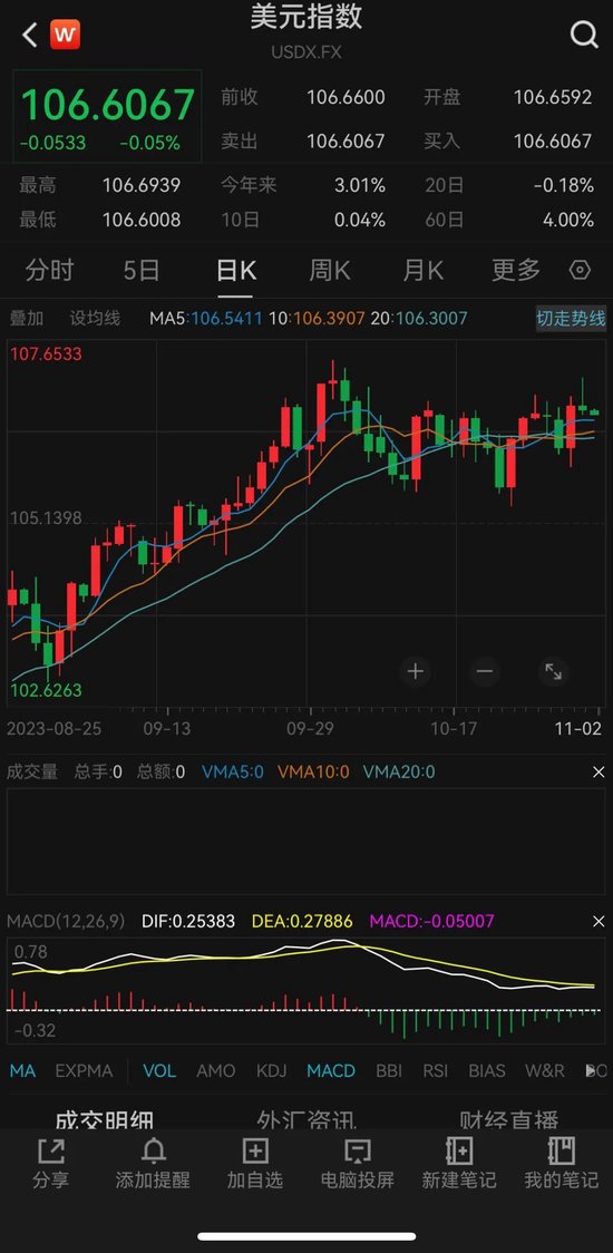 纽约尾盘,美元指数跌0.06%报106.66,非美货币多数上涨,欧元兑美元跌0.05%报1.0570,英镑兑美元涨0.03%报1.2152,澳元兑美元涨0.89%报0.6393,美元兑日元跌0.49%报150.95,美元兑瑞郎跌0.28%报0.9078,离岸人民币对美元涨74个基点报7.3352。