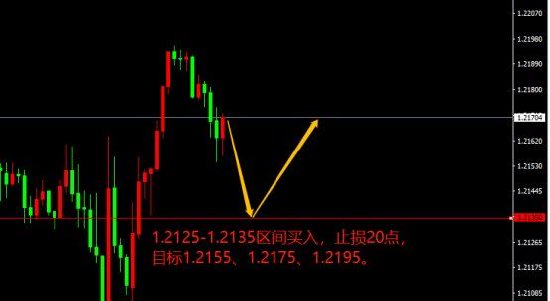 1.2125-1.2135区间买入,止损20点,目标1.2155、1.2175、1.2195。