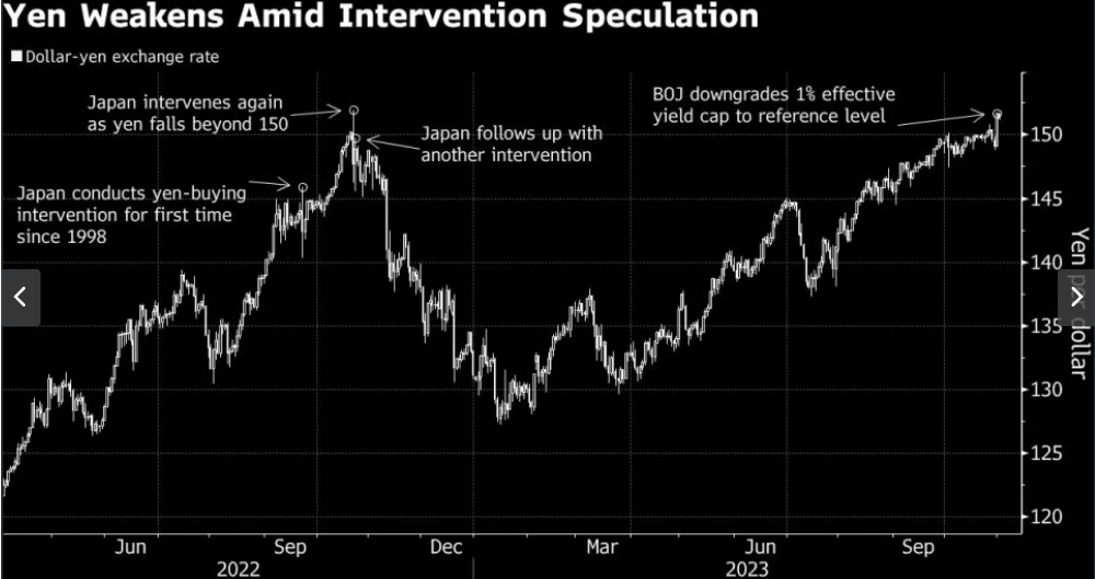 日本央行计划外的债券购买行为令人不安。此次行动还直接对支撑日元的努力产生了影响,日元正受到日美两国利率巨大差距的拖累。结果是日元周三上涨0.5%,周四迄今为止又上涨0.2%。这使美元兑日元的汇率远离了151的水平。10年期日债收益率今日仍收高,仅比日本央行宣布购买行动前创下的10年新高低1.5个基点。周四债券期货显示收益率将下降,而长期收益前景不变,今日晚些时候将举行的10年期日债拍卖令交易员紧张不安。