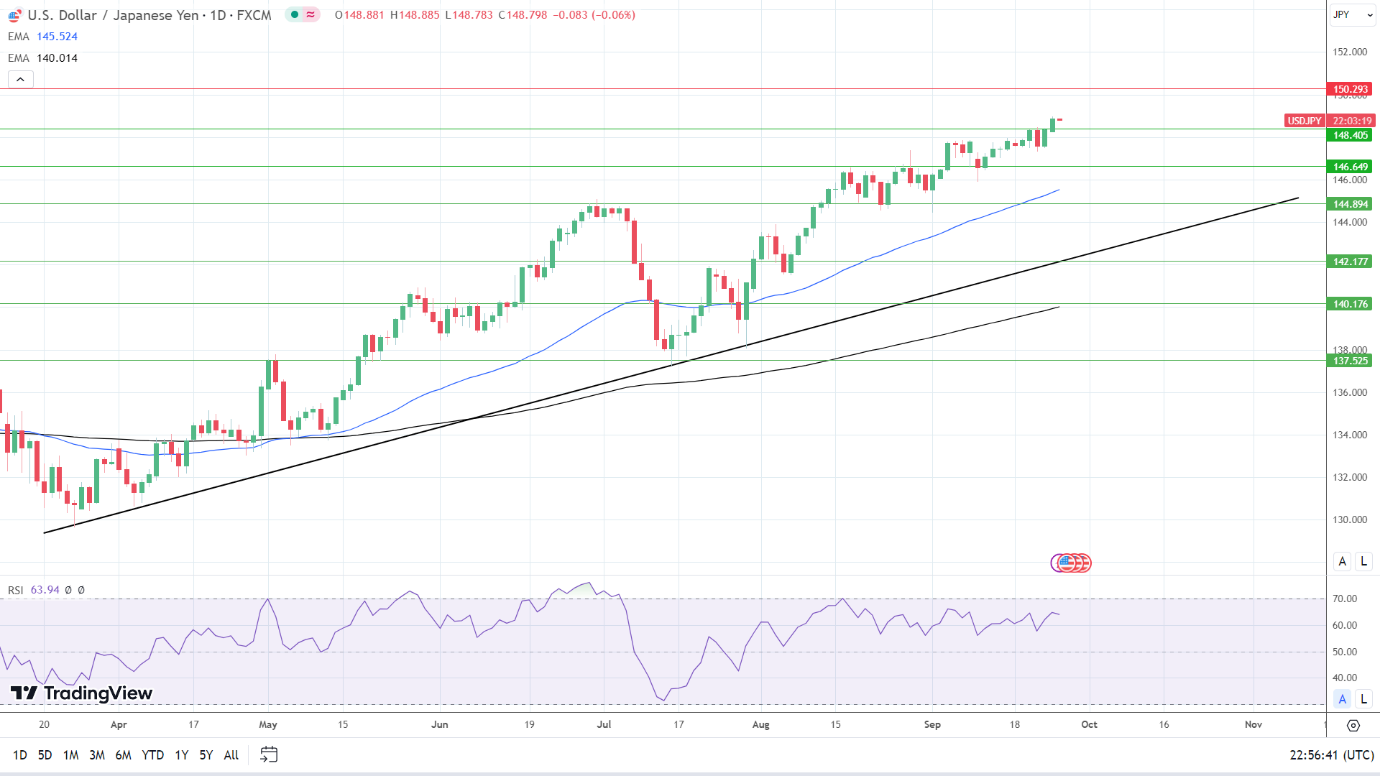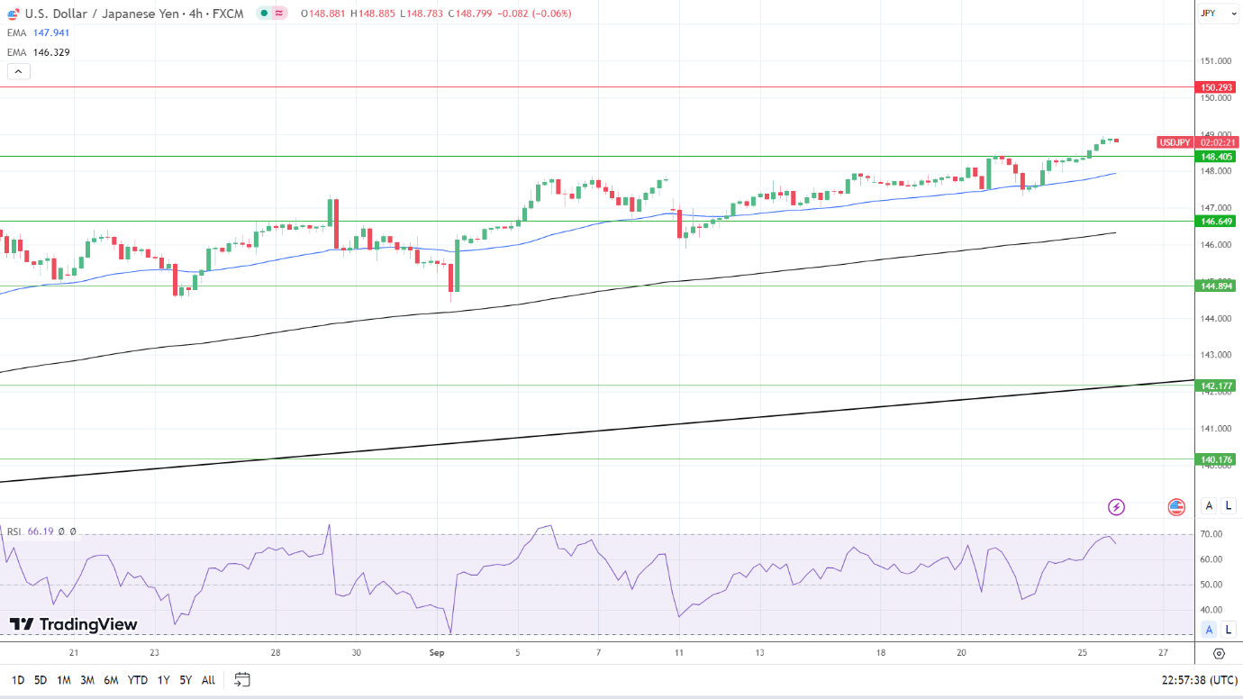 14-4小时RSI读数为66.19,支持美元/日元在进入超买区域之前回到149。
