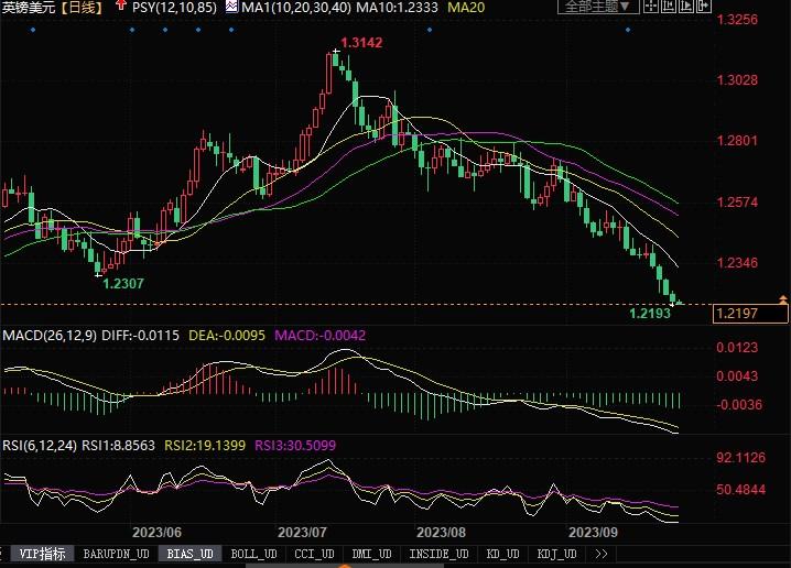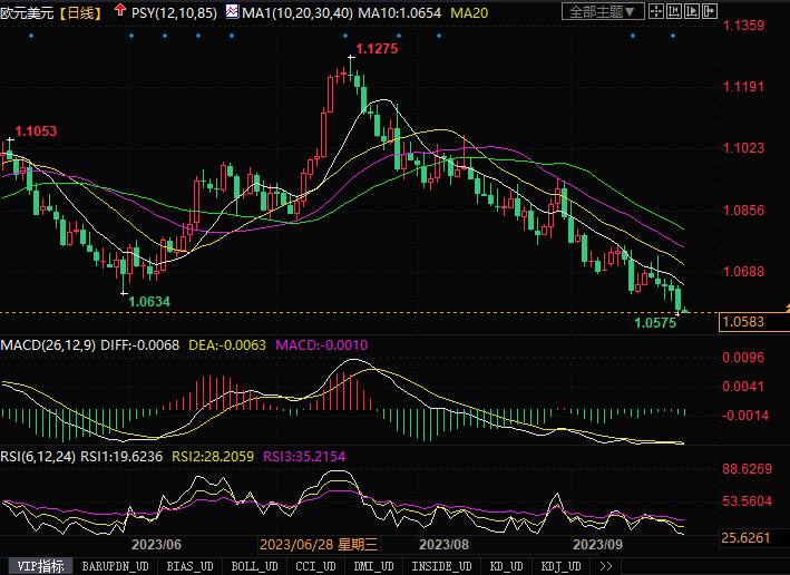 周一(9月25日),美联储在上周发出或将进一步加息并可能在更长时间内维持较高利率的信号。美联储鹰派的利率前景令美国公债收益率攀升,继续提振着对美元的需求,美元指数触及106.10的11月30日以来最高。欧元兑美元跌至1.0575美元的3月16日以来最低。由于认为欧洲央行不太可能进一步加息,欧元兑美元走软。有分析表示:“美联储仍非常依赖数据,并将逐次会议逐次分析,欧洲央行基本上已发出信号,暗示他们现在处于终端阶段,因此,在我们看来,即使二者的基调仅略有轻微变化,也足以让欧元/美元暂时保持一定的锚定。”打后就看主要经济体中,到底谁能维持高利率水平更长时间而又不伤及经济的发展。就当前情况看,美元仍旧是占据鳌头。周一公布德国IFO商业景气报告显示,商业景气指数从8月份的85.8下降到9月份的85.7,数据继续显示欧元区国家经济发展陷入不佳状态。从而也促使交易员继续放胆空头欧元。从技术角度来看,欧元/美元跌穿1.06关键支撑位置后,下一个支撑位置将会瞄准3月份的低点1.0516。