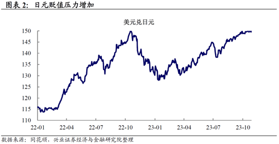 调整YCC可能不只在于通胀压力,但工资和通胀趋势仍在观察窗口期。在最新一期的经济展望中,日央行基于近期油价升温、进口通胀传导的持续性而上调通胀预测:将2023年总体CPI同比上调0.3个百分点至2.8%、核心CPI同比上调0.6个百分点至3.8%;将2024年总体CPI同比上调0.9个百分点至2.8%、核心CPI同比上调0.2个百分点至1.9%。日央行仍然倾向于认为通胀来自输入性成本端而非工资压力,本次调整YCC的背后可能有以下原因:一是高企的通胀压低实际利率,国债利率面临上行压力,人为施加上限不利于债市流动性;二是日元已贬值至150关口,通过进口价格对国内通胀构成上行风险;三是日央行资产负债表继续扩张的能力可能有限。尽管进一步调整了YCC,但日央行表示将继续“耐心地”实施宽松的货币政策,强调通胀稳定在2%以上的前提是工资和价格之间能够形成互相促进增长的良性循环,因此在日央行结束对工资和通胀趋势的观察前,货币政策的不确定性仍高。