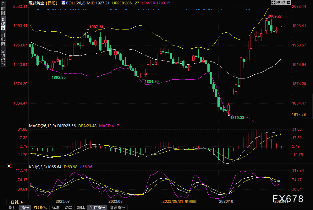 大宗商品:黄金上周整体维持高位盘整姿态,在连续三周大涨后开始整固,金价逐步失守2000关口,最低触及1969美元,当周收于1992美元,周跌幅达到0.24%。与此同时,现货白银上周走势震荡,整体在23美元上下波动,最低触及22.52美元,最高上探23.59水平,当周小涨1.1%。