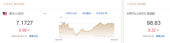 9月26日,人民币兑美元中间价报7.1727,与上个交易日持平。