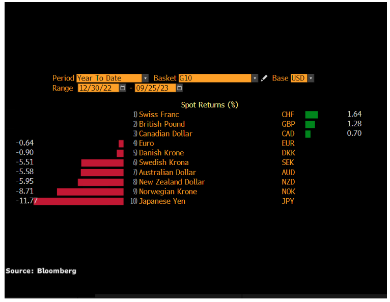 上周的联邦公开市场委员会会议结束时,鲍威尔表示利率将“在更长时间内保持在较高水平”。如果政策制定者采取强硬语气并强化上周的信息,随着围绕美联储2023年再次加息的预期上升,美元兑日元可能会走高。