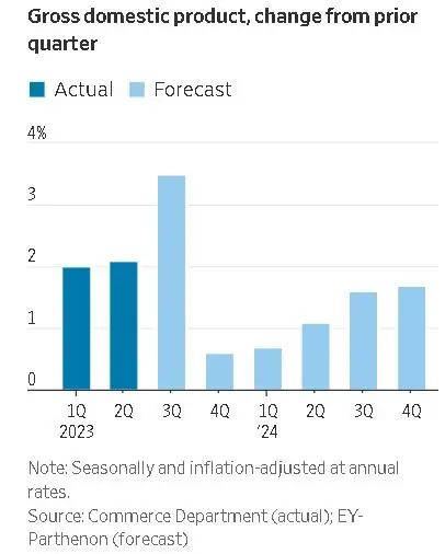 许多分析师预计今年秋季经济增长将放缓,但不会出现衰退。Gregory Daco预测,第四季度经济增长率将从本季度3.5%的预期增长大幅放缓至0.6%。高盛经济学家预计,下季度经济增长率将从第三季度的3.1%降至1.3%。