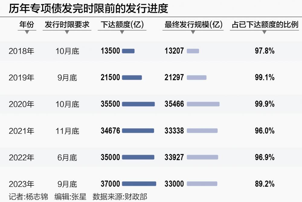 在7月24日召开的中央政治局会议提出“加快地方政府专项债券发行和使用”后,21世纪经济报道曾在8月初报道,当时监管部门已通知地方,要求2023年新增专项债需于9月底前发行完毕,原则上在10月底前使用完毕。