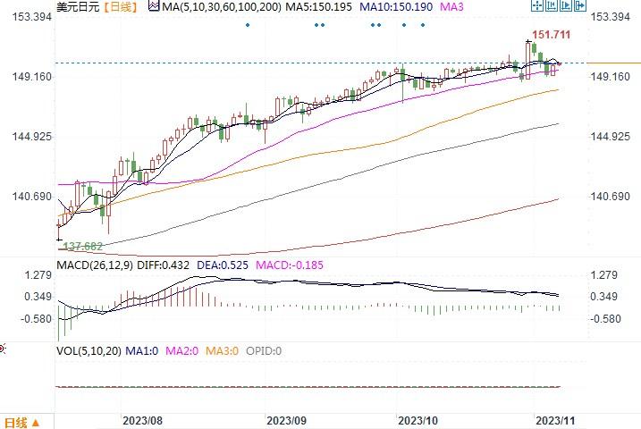 周一(11月6日),美元在空头回补之下有所回升,日内美元兑日元上涨0.41%,收盘在150.07。虽然上周不及预期增长的美国非农数据一度提升美国将终结加息周期的预期,但是市场还是期盼能从美联储主要官员本周的一些讲话中进一步获得能够证实该预期的线索。美联储主席鲍威尔将于本周三和周四发表讲话,他的表态料会引起投资者相当重视。但可以想象的是,预计鲍威尔本周的讲话应也不会透露太多深入的信息,维持其在10月利率会议上的表态将可能是市场能获得的主要内容,那就是美联储需要确确实实看到通胀率回到其核心目标之下,或才考虑利率的最终变动。也即是说美联储仍旧要看年内接下来的各项重要数据的表现而定。市场的下一个主要驱动因素可能是下周的10月份消费者物价通胀数据,消费者物价指数(CPI)将是美联储是否需要再次加息的最佳判定指标。如果公布的数据疲软,那么焦点就会转向明年的宽松程度。相反,公布的数据仍然强劲,那么就令市场很难断定美联储是否还必须敞开进一步加息大门。在这种市场情绪支配下,叠加日本央行在结束宽松货币上动作慎而微,短时间内日元似乎较难获得持续走升的刺激动力。但忌惮于日本央行的防护性干预出现,日元近期也似乎不存在大幅进一步走贬的倾向。日线图上观察到的背驰情景已延续较长时日,就看何时最终得以验证了。