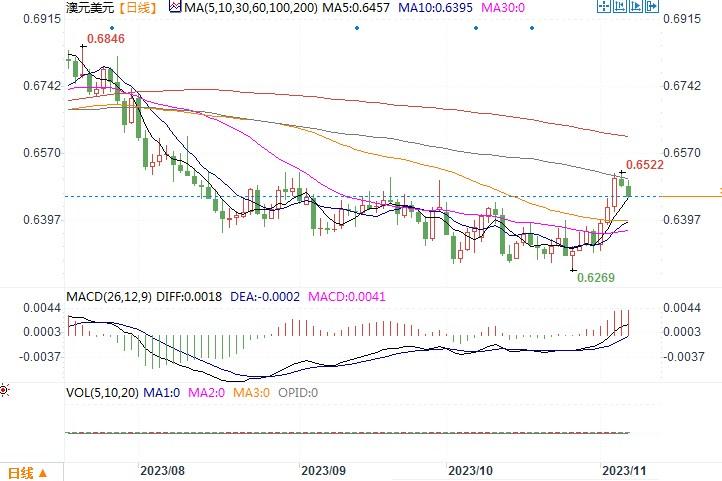 周一(11月6日),澳元/美元下跌0.34%至0.6491,此前曾触及三个月高点0.6523。上周五暴涨之后,澳元/美元本周一开盘后略出现小幅度的获利回吐调整。接下来,市场将聚焦澳联储周二的利率会议。路透调查显示,鉴于通胀出人意料地强劲,澳洲央行会将关键政策利率上调25个基点至4.35%。但考虑到在此之前的四次会议上,澳洲央行一直保持借贷成本稳定,市场则没那么确信。期货市场交易显示澳洲央行本周升息的可能性只为58%。但市场已完全消化2月前加息的预期,甚至认为有可能进一步升息至4.6%。若周二澳联储果真加息25个基点,那么澳元将获得刺激动力向高处进一步反弹上走。相反若澳联储继续按兵不动,澳元反弹势头将遭到削弱,从而进一步提升澳元获利回吐的交易情绪。小时短线走势图上,澳元存在进一步回落调整态势,日内留意澳联储利率会议结果带来的走势影响。